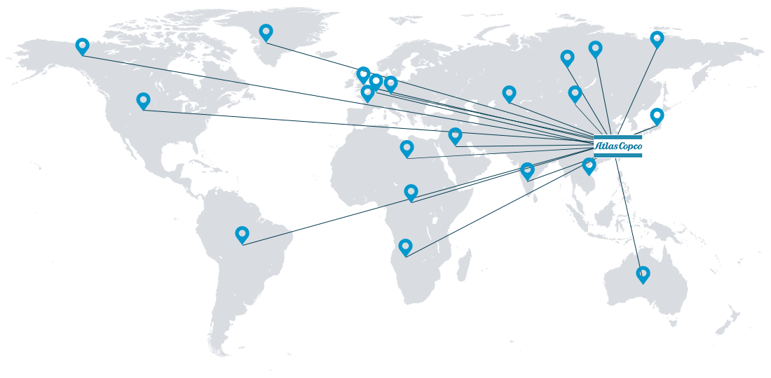 แบรนด์ Atlas Copco ถือกำเนิดขึ้นในปี พ.ศ. 2416 โดยมีประวัติยาวนานถึง 152 ปี โดยมีสำนักงานใหญ่ในกรุงสตอกโฮล์ม ประเทศสวีเดน และเข้าสู่ตลาดจีนในปี 2502 ด้วยนวัตกรรมและการพัฒนาอย่างต่อเนื่อง เราจึงได้แบ่งกลุ่มธุรกิจออกเป็นสี่กลุ่ม ได้แก่ เทคโนโลยีคอมเพรสเซอร์ เทคโนโลยีสูญญากาศ เทคโนโลยีอุตสาหกรรม และเทคโนโลยีพลังงาน ศูนย์วิจัยและพัฒนาผลิตภัณฑ์หลักของเราตั้งอยู่ในเบลเยียม เยอรมนี สหรัฐอเมริกา จีน และอินเดีย ลูกค้าของเราอยู่ในกว่า 180 ประเทศ แม้จะมีการเปลี่ยนแปลงมากมาย แต่จิตวิญญาณแห่งนวัตกรรมของเรายังคงไม่เปลี่ยนแปลง