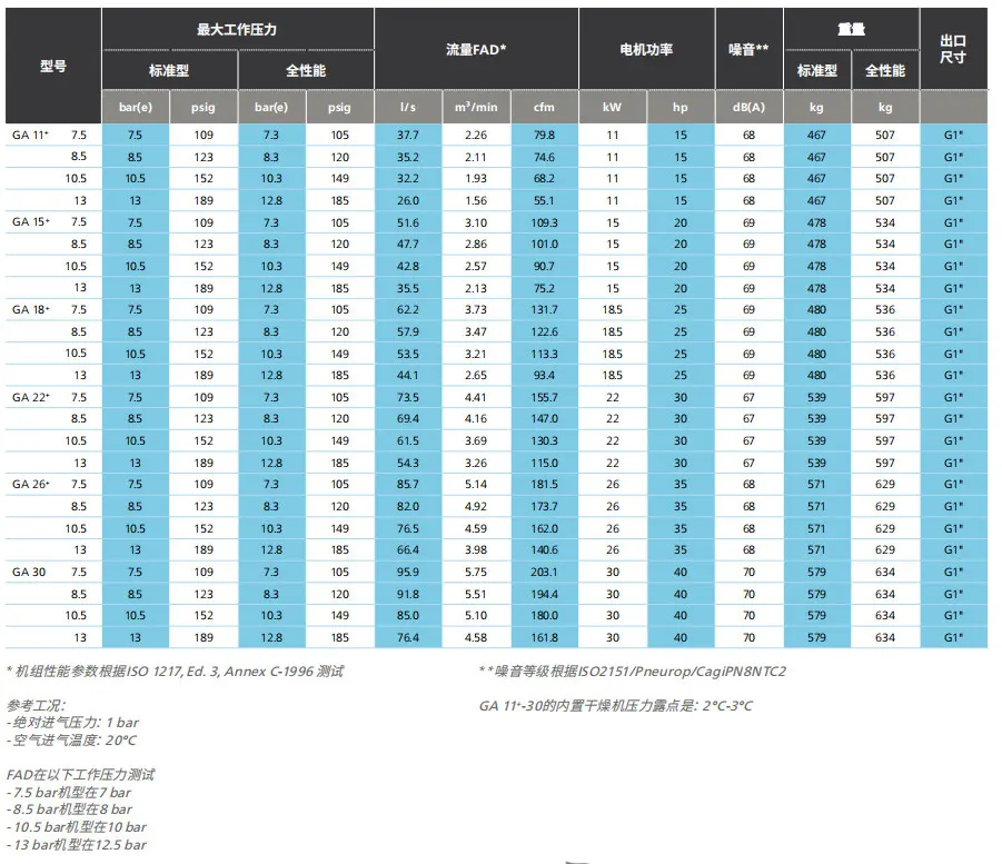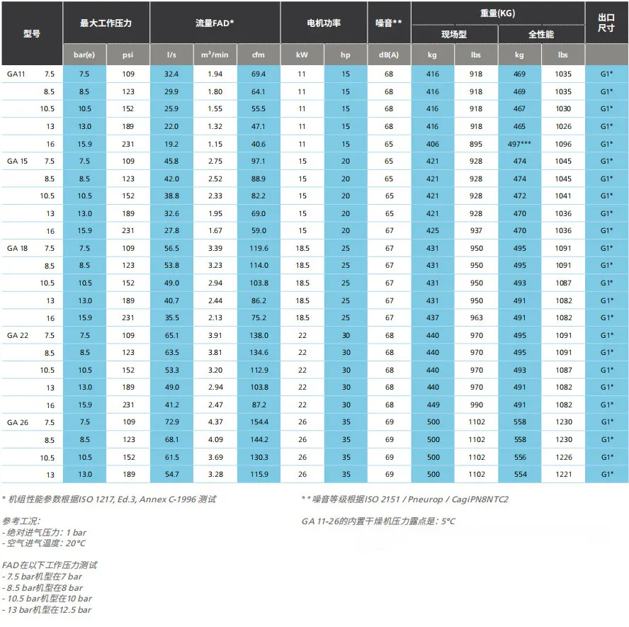 ·GA11-26 ใช้โรเตอร์ใหม่และมอเตอร์ประสิทธิภาพสูง IE2/IE3 ซึ่งมีความทนทานและมีประสิทธิภาพ