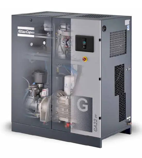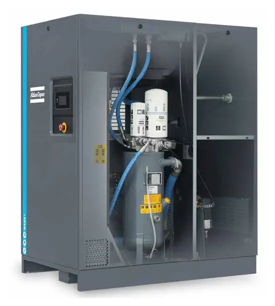 ·สกรูคอมเพรสเซอร์แบบฉีดน้ำมันใช้ระบบขับเคลื่อนหลักและกระปุกเกียร์ที่มีประสิทธิภาพของ Atlas Copco เพื่อความน่าเชื่อถือที่สูงมาก